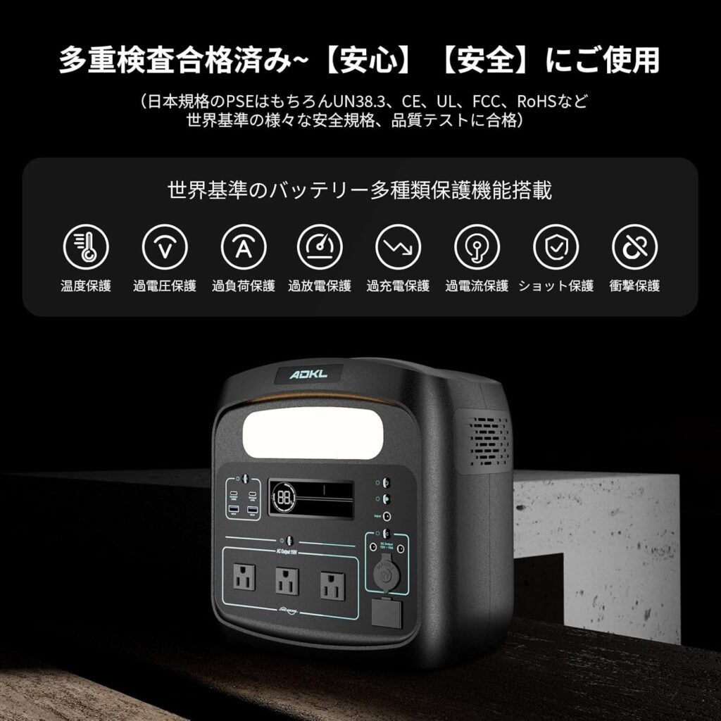 ADKLの最大の特徴は、「実用的な機能性」と「手頃な価格帯」の両立を追求している点にあります。高額になりがちな大容量ポータブル電源において、無駄を省いた設計と効率的な製造プロセスを採用することで、ユーザーが手を出しやすい価格を実現しています。