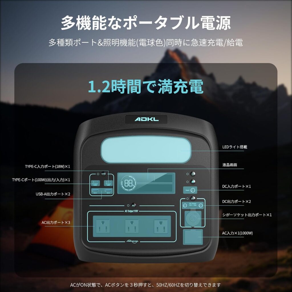 商品紹介:ADKL ポータブル電源 N1200