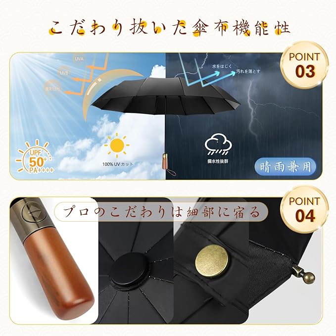 - 特別な機能:ワンタッチ自動開閉式、耐風設計、超撥水、UVカット