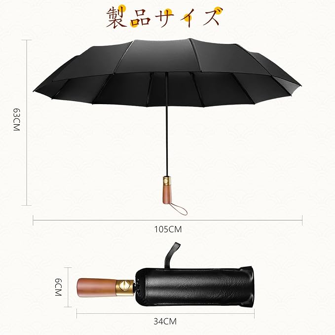 「天然木のハンドルに高級感があり、ビジネスバッグから取り出した際に見栄えが良いです。」 「ボタン一つで勢いよく開閉するので、車の乗り降りの際に濡れずに済み、非常に重宝しています。」