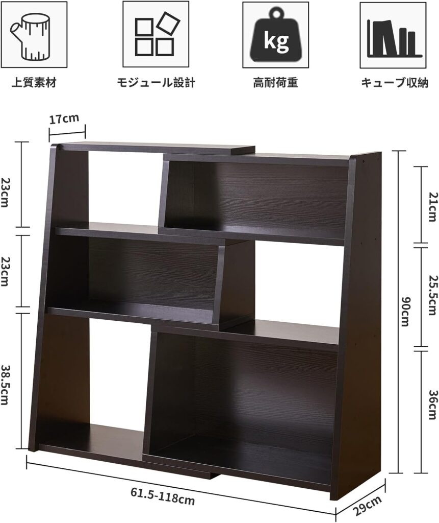 対してAibijuの本棚 YD-BC005B は、2つのパーツを自由に伸縮・角度調整できる可変構造を採用しており、購入後に住環境が変わっても柔軟に対応できます。