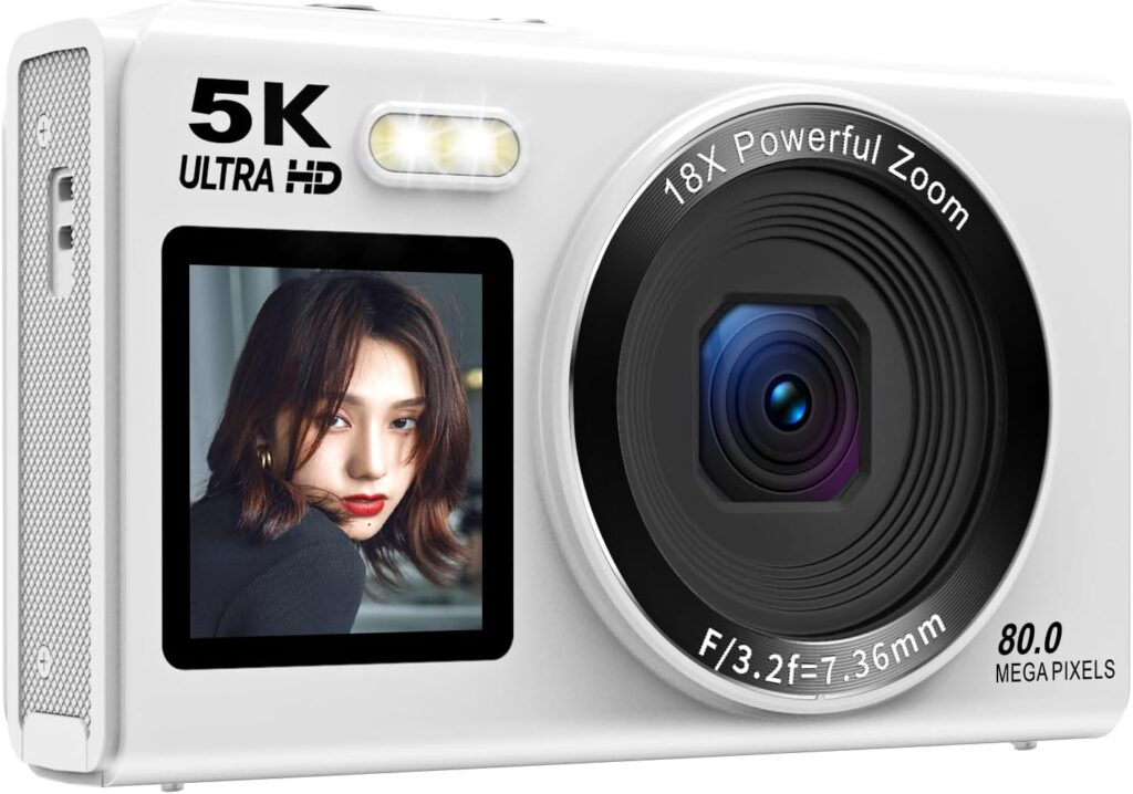 デュアルスクリーン設計も大きな強みです。前面に1.5インチ、背面に2.8インチのディスプレイを搭載し、ボタン一つで簡単に切り替えられます。自撮りをする際に前面ディスプレイで構図を確認できるため、家族写真やグループ撮影の際にも非常に便利です。また、1300万CMOSセンサーと強力なアルゴリズムのサポートにより、被写体を明確に識別し、手頃な価格ながら鮮やかな映像を実現しています。