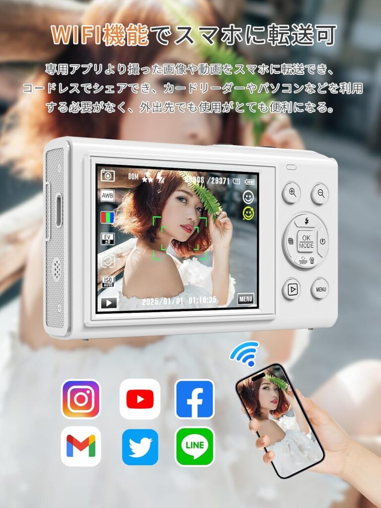AiMike S150の最大の魅力は、Wi-Fi転送機能によるスマートフォンとのシームレスな連携です。従来のデジタルカメラでは、撮影した写真をスマホに移すためにカードリーダーやパソコンを経由する必要がありましたが、S150は専用アプリを使うことで、撮影直後にワイヤレスで画像をスマホに送信できます。これにより、旅行先やイベント会場でも、その場で写真をSNSにアップしたり、友人と共有したりすることが可能になります。特にInstagramやTwitterなどのSNSを頻繁に利用するユーザーにとって、この利便性は計り知れません。