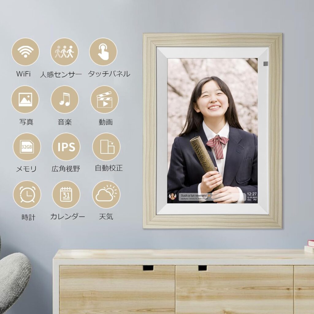 このモデルの最大の武器は、1280×800という高精細な解像度を、10.1インチという黄金比のサイズで実現している点にあります。一般的にこの価格帯では画質が犠牲になりがちですが、本製品は発色が非常に豊かで、肌の質感や風景の奥行きまで忠実に再現します。さらに、スマートフォンとの連携機能が極めて強力です。専用の無料アプリ(Frameo等)を経由することで、世界中のどこにいてもインターネットさえあれば瞬時に写真を共有できます。これは、物理的な距離をゼロにする「心の架け橋」としての役割を果たします。内蔵メモリも余裕があり、数千枚単位の写真をローテーションで表示できるため、デジタルフォトフレームとしての基本性能を完璧に網羅しています。