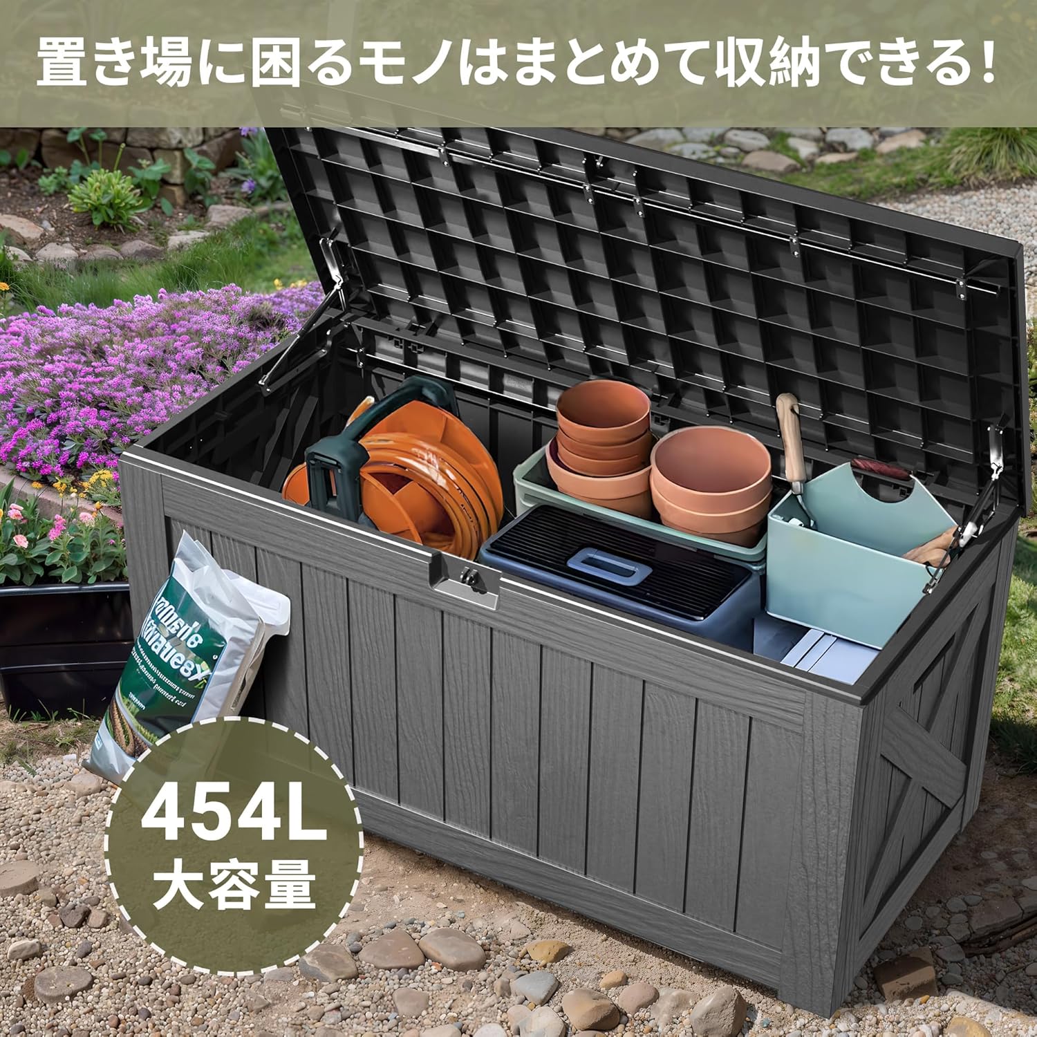454Lという広大な空間は、散らかりがちな屋外スペースに静寂を取り戻すための特効薬となります。