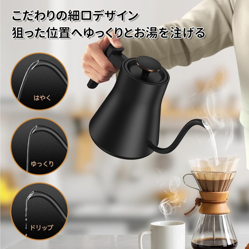 - 「細口のノズルが秀逸で、お湯を狙った場所に、細く、静かに注ぐことができます。ハンドドリップの味が格段に向上しました。」
