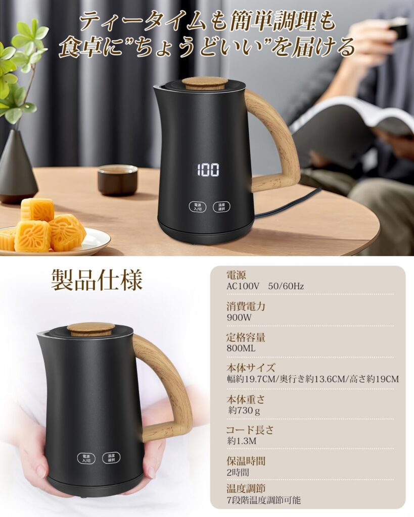 さらに、木目調の高級感あふれるデザインは、無機質になりがちなキッチン空間に温もりと洗練さをもたらします。900Wのハイパワーによるスピーディーな湯沸かしと、2時間の保温機能は、忙しい現代人のライフスタイルに寄り添う心強い味方。機能性とデザイン性、その両方を高い次元で満たしながら、驚きのコストパフォーマンスを実現している点こそ、この製品が多くの人を惹きつけてやまない核心的な魅力と言えるでしょう。