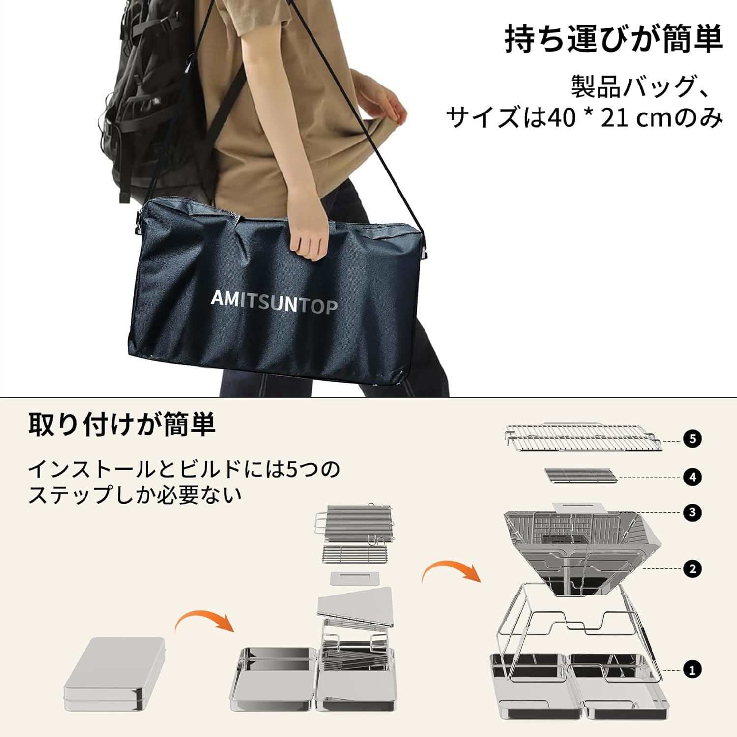 ブランド名の由来は、網(AMI)と太陽(SUN)、そして頂点(TOP)を組み合わせた造語と推測され、屋外での調理や暖をとる道具に特化したいという意志が感じられます。