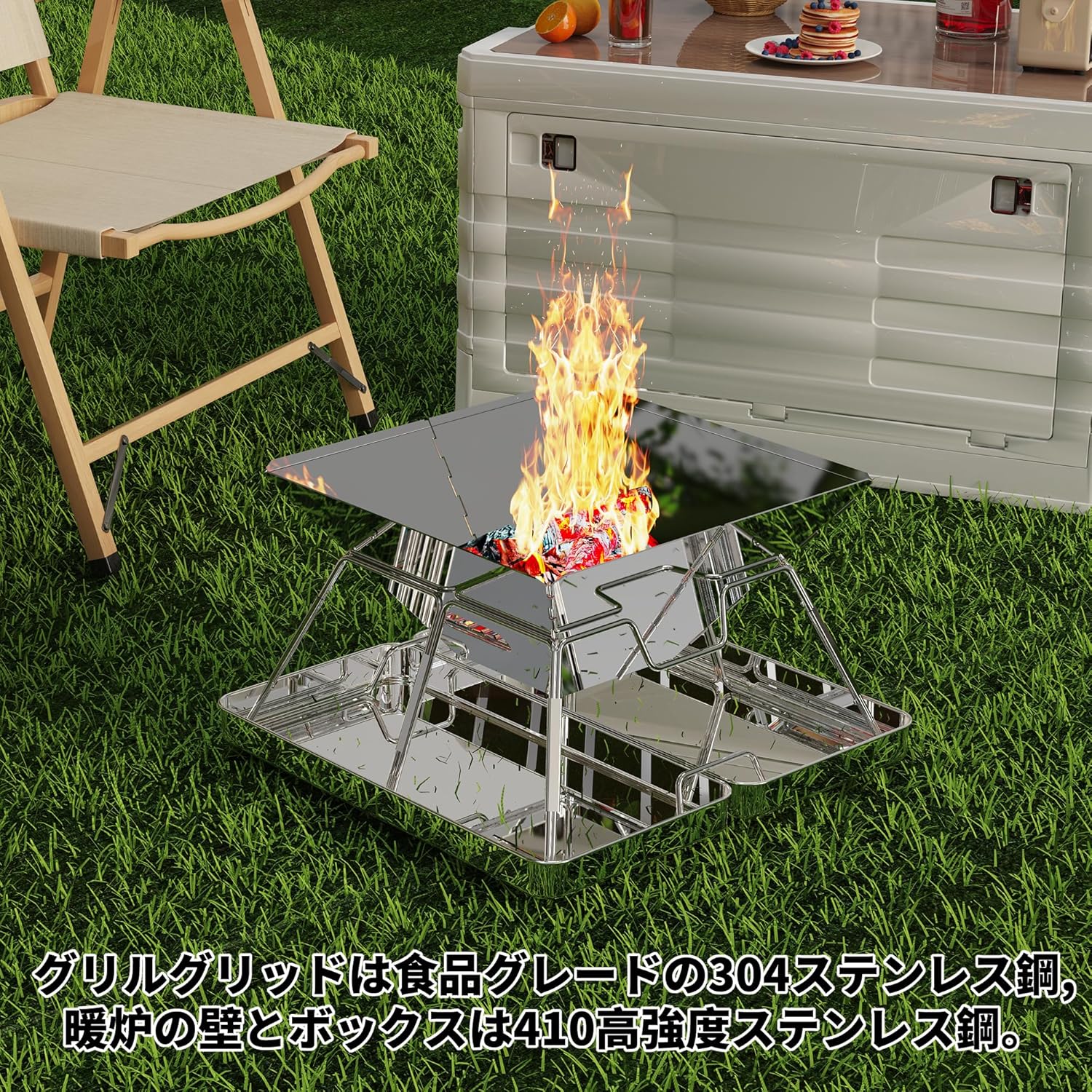 次のキャンプの計画を立てる際、この銀色に輝く焚き火台が、あなたのそばで静かに炎を支えている姿を想像してみてください。