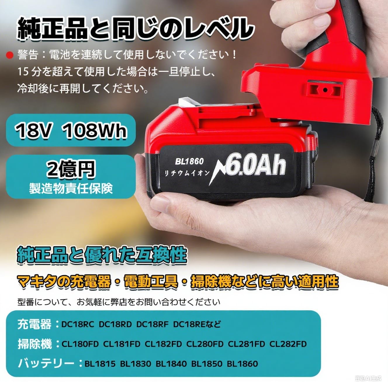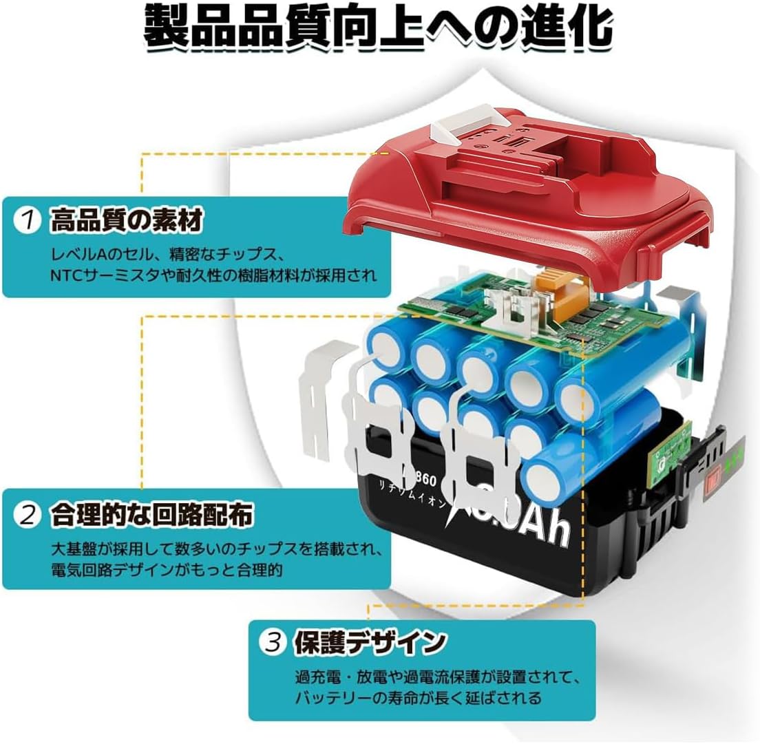 商品紹介:「Amityke 互換 マキタ 18V バッテリー 2億円の責任保険付」
