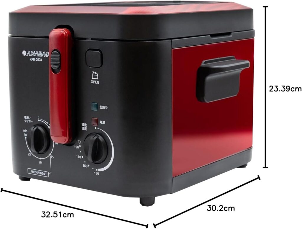 「本体サイズが奥行き32.5×幅30.2×高さ23.4cmとコンパクトな一方で、容量についての情報を購入前に明確に確認できなかったため、実際にどれだけの量を揚げられるかのイメージが難しかったです。購入前に容量と揚げられる量を公式ページで確認することをお勧めします。」