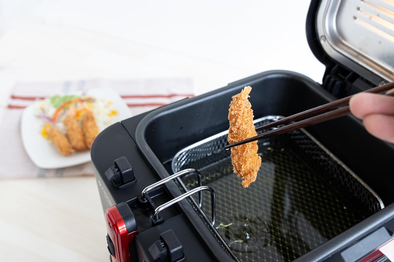 1,250Wのパワーと2.8kgの軽量さが組み合わさる「毎日気軽に卓上に出せる揚げ物家電」は、揚げたての唐揚げ・天ぷら・串カツという日本の食卓の喜びを、手間なく届けてくれます。