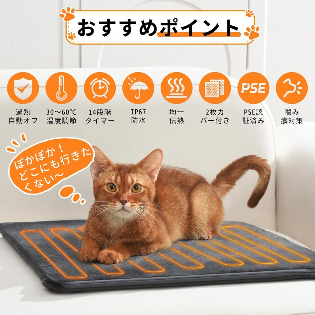 日本の老舗ペット用品メーカー(アイリスオーヤマやマルカンなど)と比較すると、AngelpetのDRT-4545は「多機能性」で勝り、「安心感の裏付け」で一歩譲ります。国内メーカーの多くは、安全性を最優先するために最高温度を低めに設定したり、温度調節をあえてシンプルにしたりする傾向があります。これは、万が一の低温やけどや故障を防ぐためのリスク回避です。