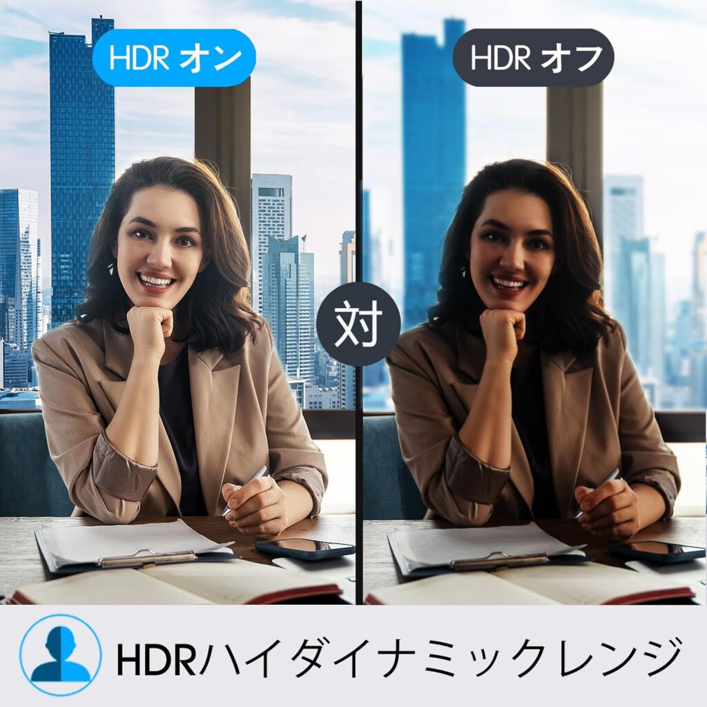 「4K解像度は伊達ではなく、肌の質感や服の素材感までくっきりと映ります。部屋の照明が少し暗くても、明るく補正してくれるのが助かります」
