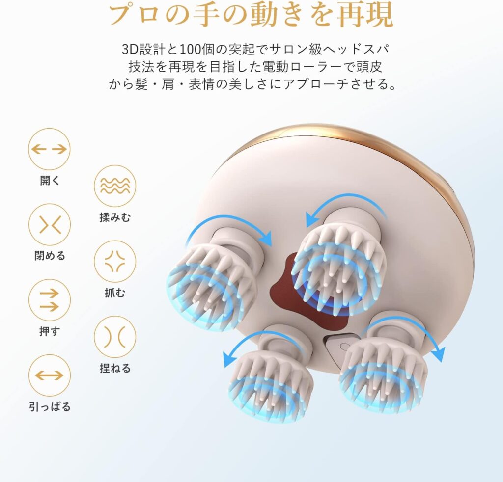 arboleaf CM11Bは、4つのブラシが独立して逆回転する「3D揉捏(じゅうねつ)」技術と、合計100個の突起によって、プロの指圧を再現するような複雑で心地よい刺激を生み出します 。これに加えて、一部のモデルでは美容サロンでも使われる「赤色LED」機能を搭載しており 、揉みほぐしながら頭皮環境を整えるという、ワンランク上のスカルプケアが可能です。この「揉み心地+α」の機能が、arboleafの大きな強みと言えるでしょう。