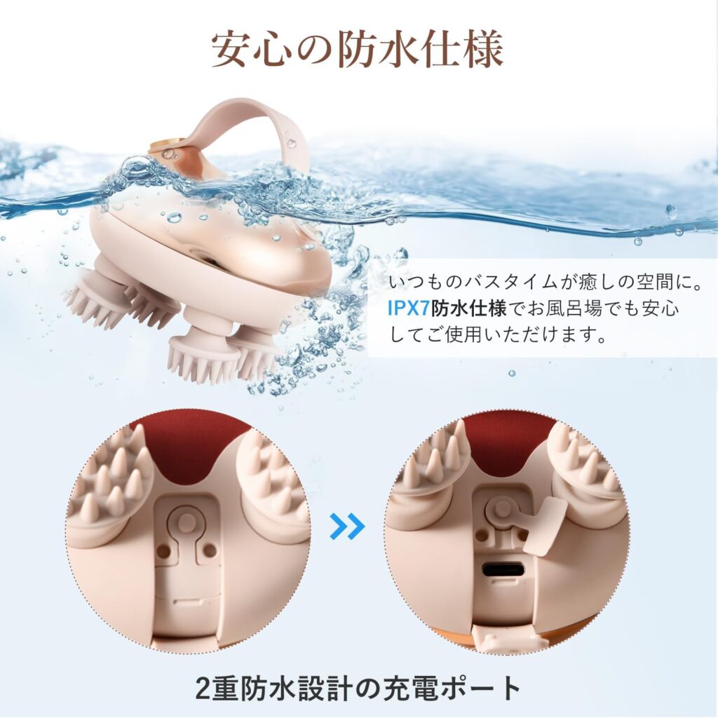 この商品の最大の魅力は、日常のバスタイムを、極上のリラクゼーション空間へと昇華させてくれる点にあります。防水仕様なので、シャンプーをしながら頭皮を揉みほぐせば、手洗いでは届かない毛穴の奥の汚れまでスッキリと洗浄。まるでプロのヘッドスパを受けたかのような、かつてない爽快感を自宅で毎日味わうことができます 。