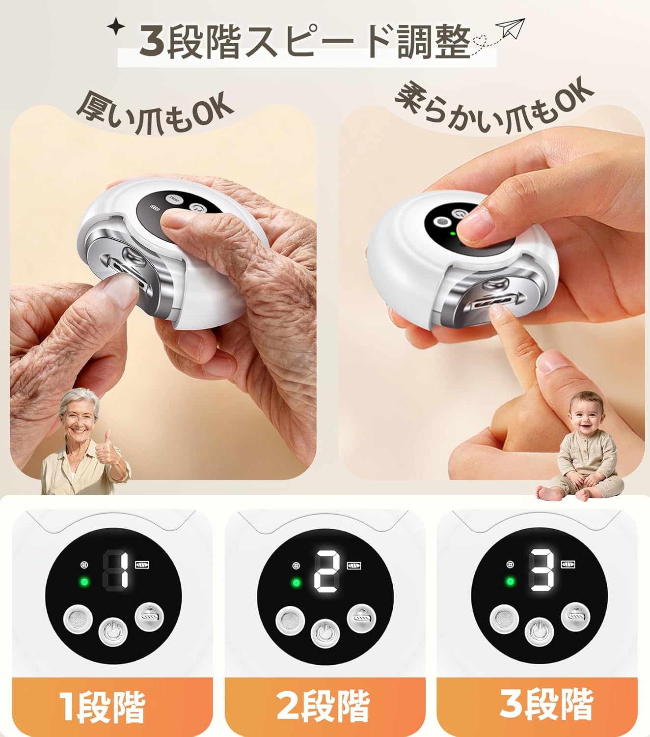 しかし、CH-707は「精密加工ステンレス刃」を回転させ、優しく削り取る方式を採用しています。これにより、爪への物理的な負担が劇的に軽減され、切り終わった瞬間から断面がシルクのように滑らかになります。また、「ベビー用品基準の安全素材」と「航空機グレードの合金構造」を組み合わせることで、肌に触れても怪我をしない絶対的な安心感と、毎日使える耐久性を両立させています。視力が低下して手元がおぼつかない方や、繊細なケアが必要な乳幼児にとって、これは単なる道具ではなく、安全を買うという投資になり得ます。