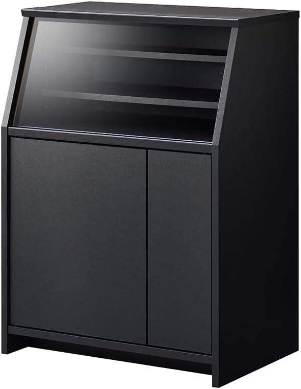 推し活ラック OPN-8060ST-BKは、ひな壇部分をアクリル板で覆い、収納部を扉で守る構造で、グッズの保護と見せる楽しさを両立しています。
