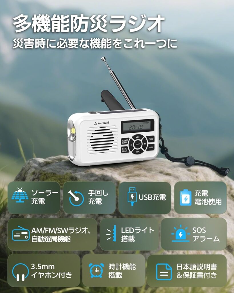 AmazonなどのECサイトを見ると、Aurorakiと同様に、3,000円から6,000円程度の価格帯で多数の多機能防災ラジオが販売されています。これらの製品は、Au-296の直接的なライバルと言えます。