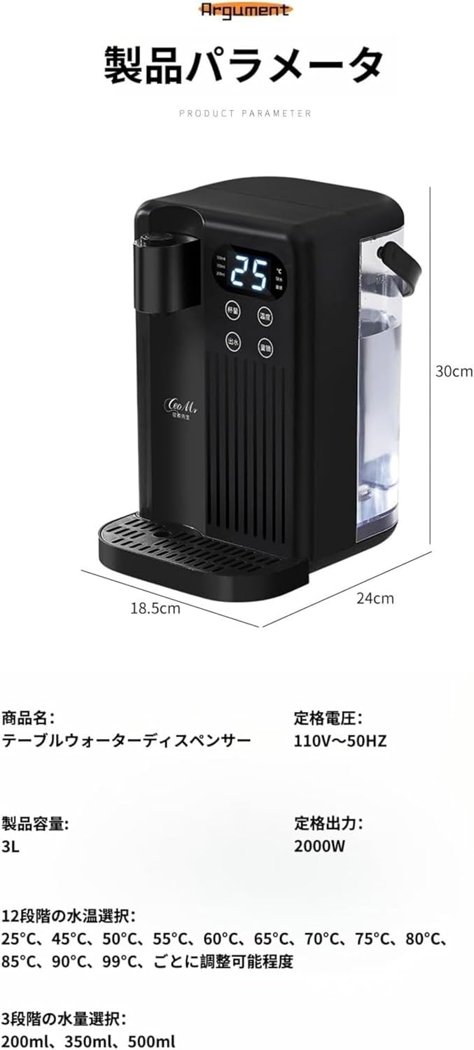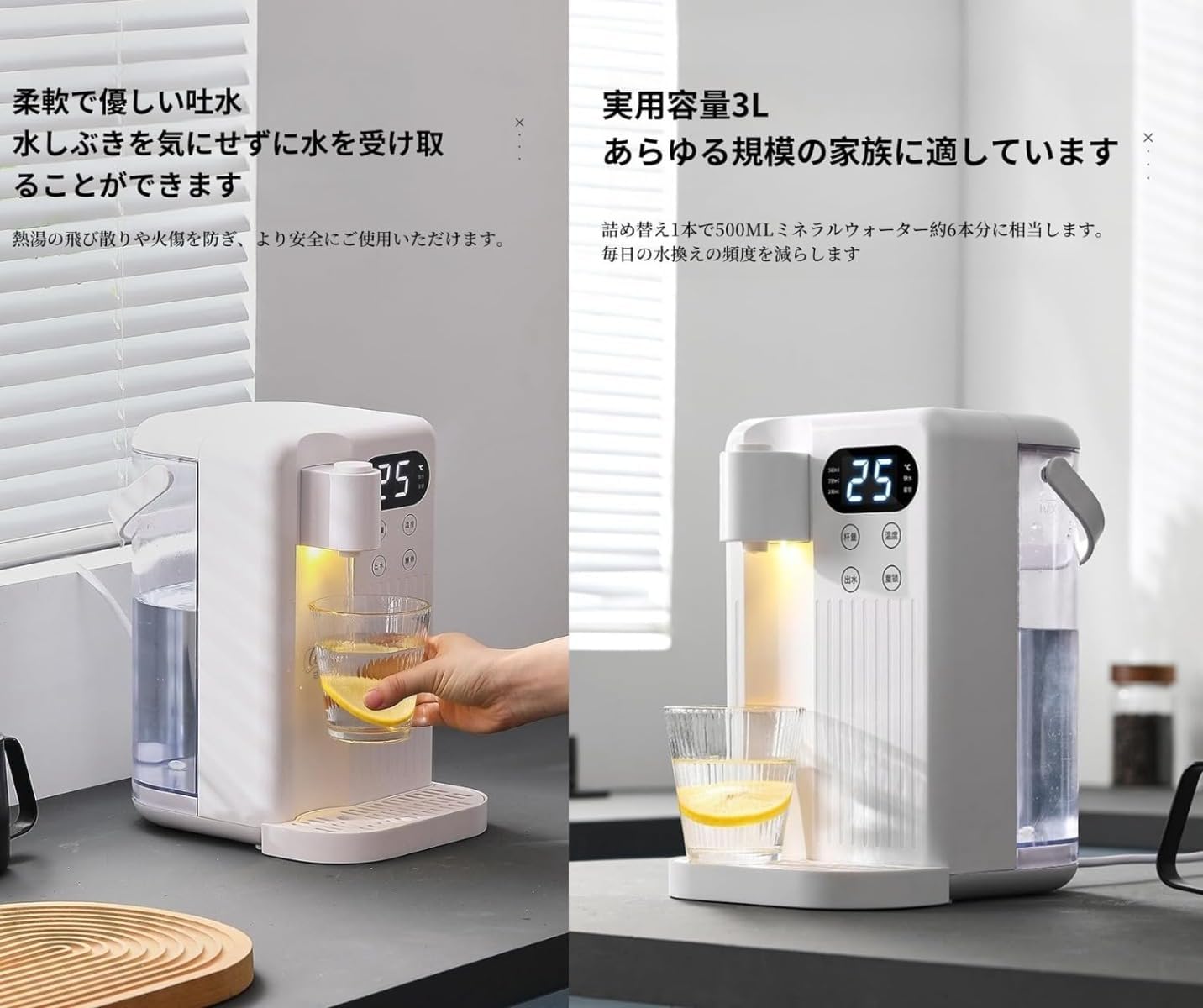 • 「3Lという容量が絶妙です。2Lのペットボトル水を入れて使っていますが、一人暮らしなら数日は持ちますし、何よりコンパクトで机の上に置いても邪魔になりません。」