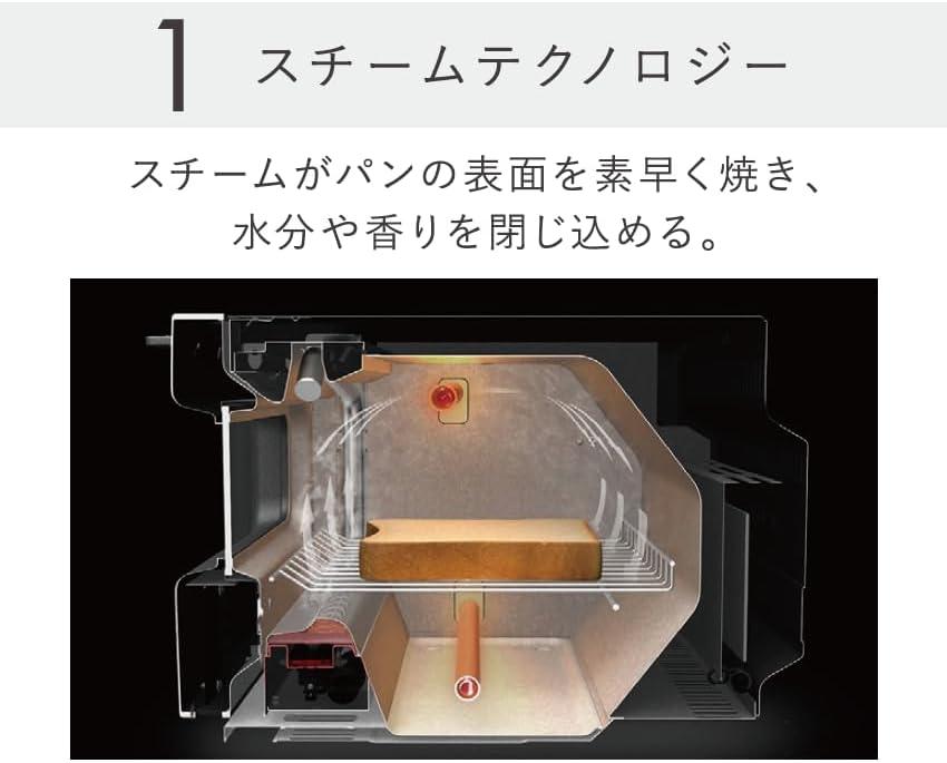 BALMUDA The Toasterの核心は、「スチームと温度制御の組み合わせ」にあります。