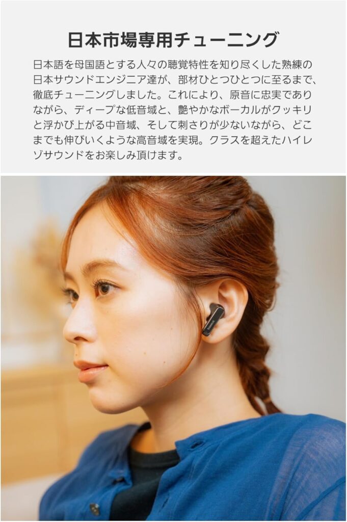 「長時間つけていても耳が痛くなりにくい。インイヤー型は苦手だったのですが、これはフィット感が絶妙で、一日中快適に過ごせます。」