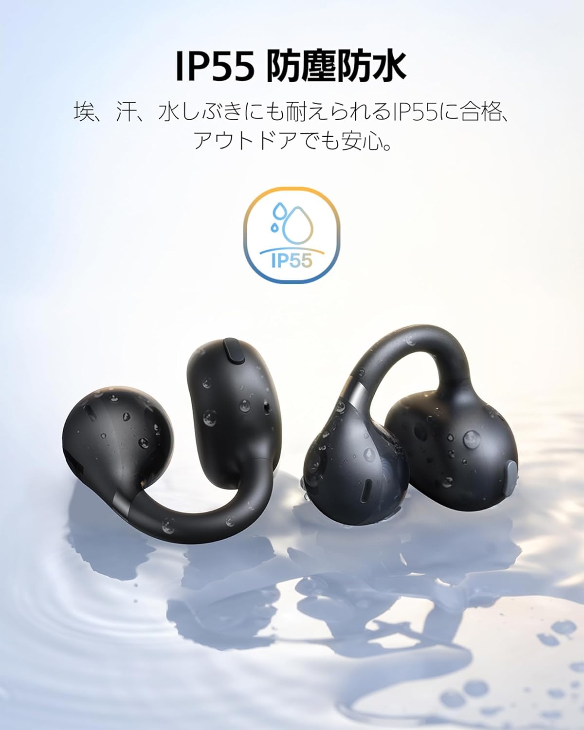また、「防水」性能を備えている点も見逃せません。これにより、ジムでのワークアウトで流す汗や、外出中の突然の雨を気にすることなく、アクティブなシーンでも音楽を楽しむことができます。さらに、本体重量はわずか「49グラム」。着けていることを忘れてしまうほどの軽さは、長時間のオンライン会議や動画視聴でも耳への負担を最小限に抑え、快適な装着感を提供し続けます。最新の「Bluetooth 6.0」対応により、人混みの中でも途切れにくい安定した接続が期待できるのも、日々の使い勝手を向上させる重要なポイントです。