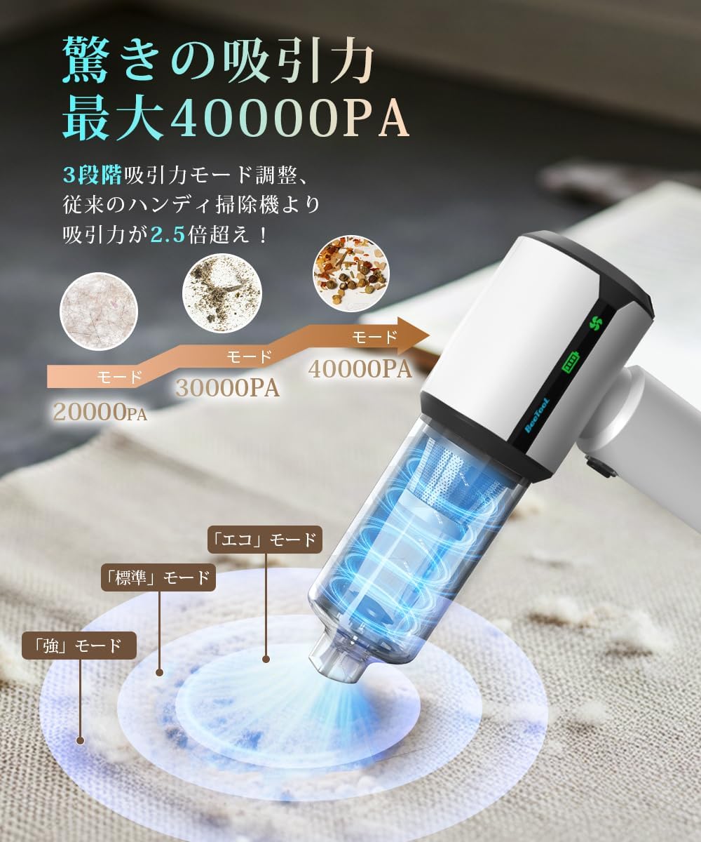 次に、モバイルバッテリーで有名なAnkerが展開する「Eufy」ブランドのハンディクリーナーです。Anker製品は品質管理が非常に厳格で、日本国内のサポート体制も盤石です。BeeTool HX-606とAnkerのモデルは、価格帯が非常に近く、最大の競合となります。