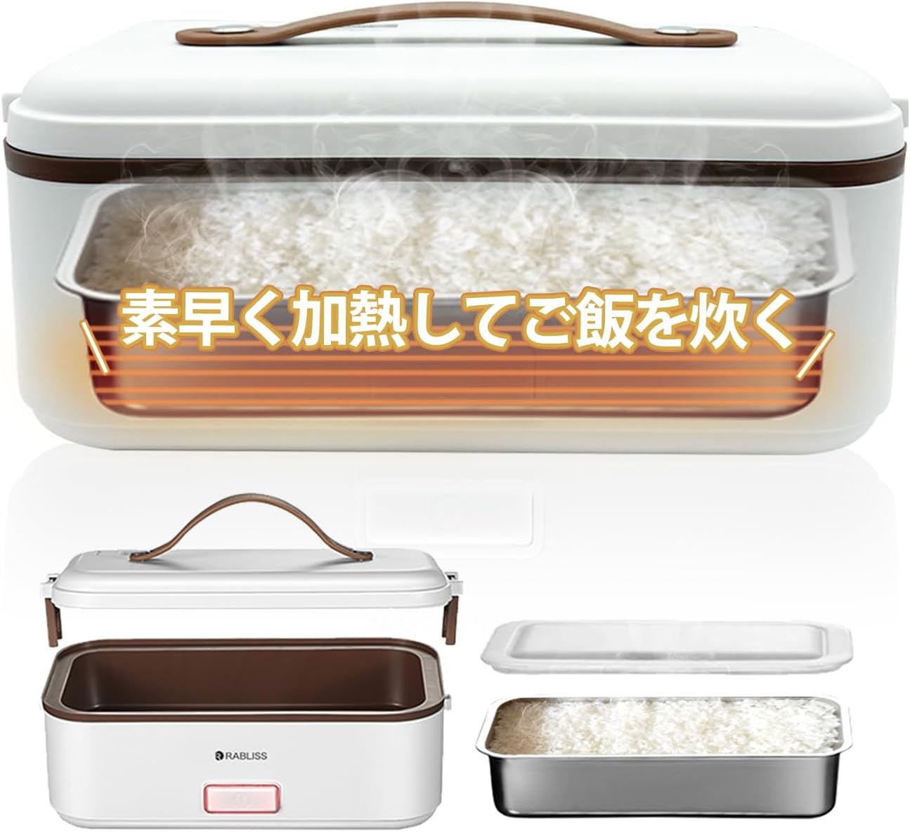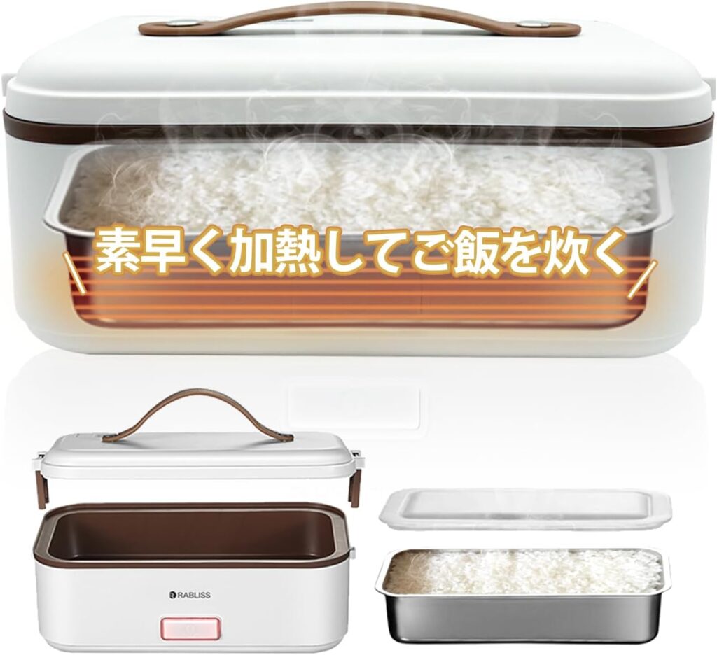 弁当箱炊飯器のパイオニアとして知られるサンコーは、多機能性で一歩リードしています。特に「2段式超高速弁当箱炊飯器 RCKDBLSWH」は、その名の通り、ご飯を炊くのと同時におかずを温めることができる2段構造が最大の特徴です。