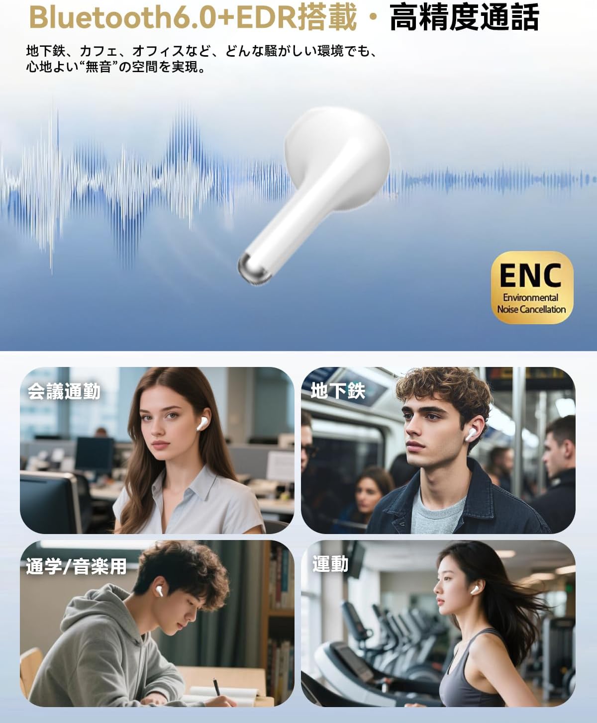 最も注意すべきは、「期待値のコントロール」です。例えば、商品タイトルで「最大60時間再生」と謳われていても、それは充電ケースを併用した場合の理論値であることが多く、イヤホン単体の連続再生時間は4〜5時間程度というレビューが見られます 。これは決して短い時間ではありませんが、誇大な表現に期待しすぎると、がっかりしてしまうかもしれません。