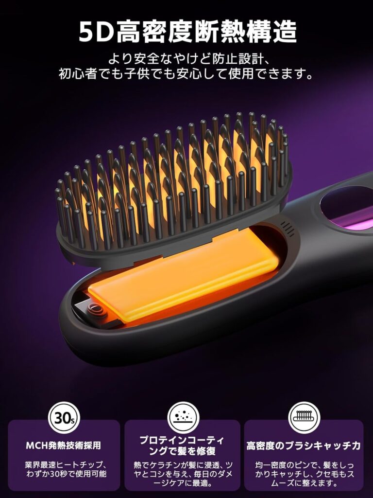 「初めてヒートブラシを使う私でも、『火傷の心配がほとんどない』設計で安心して使えました。ブラシ部分の外側が熱くならないので、おでこの生え際も怖がらずに当てられます。」