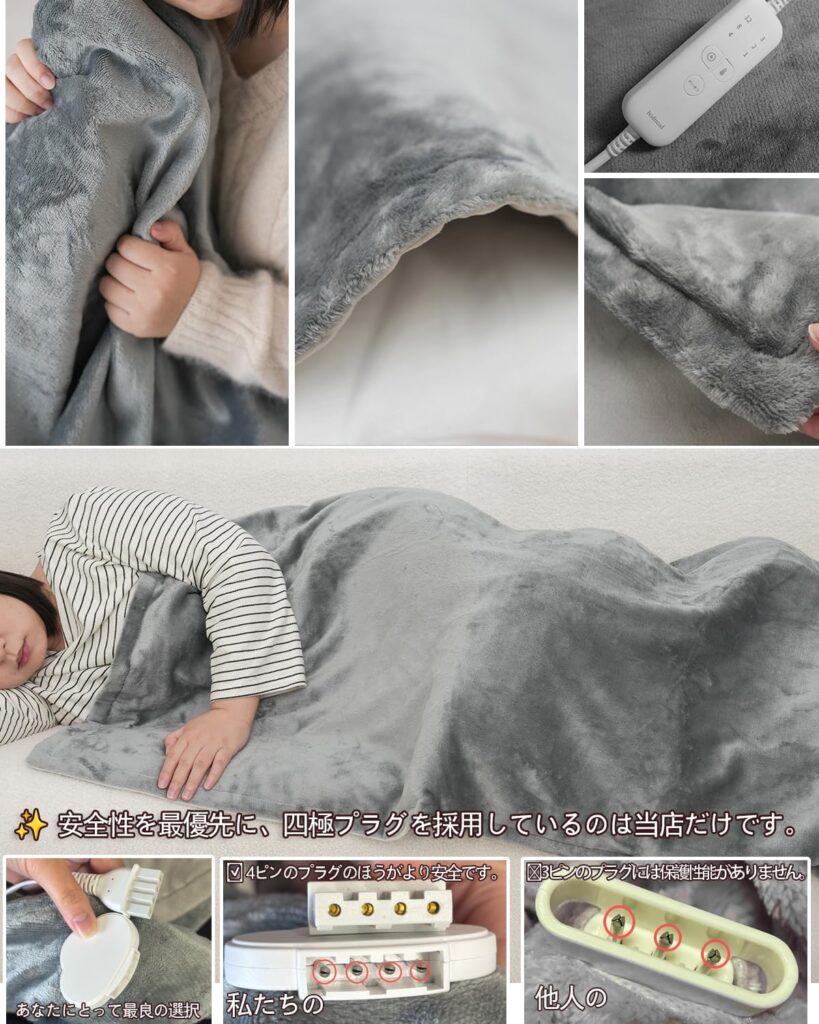 さらに、「四重保護」という安全機能は、電気毛布を使う上で最も懸念される過熱やショートのリスクを徹底的に排除しています。これは、不安なく深い眠りにつくための、目に見えない「安心」という名の保険です。また、10段階のタイマーと6段階の温度モードという「多すぎるほどの調整幅」は、夜中に暑くて目が覚める、あるいは夜明け前に冷え込むといった個人の微妙な体温変化に対応できることを意味します。これにより、ユーザーは自分だけの究極の快眠設定を見つけることができ、一晩中途切れない質の高い睡眠を実現できます。