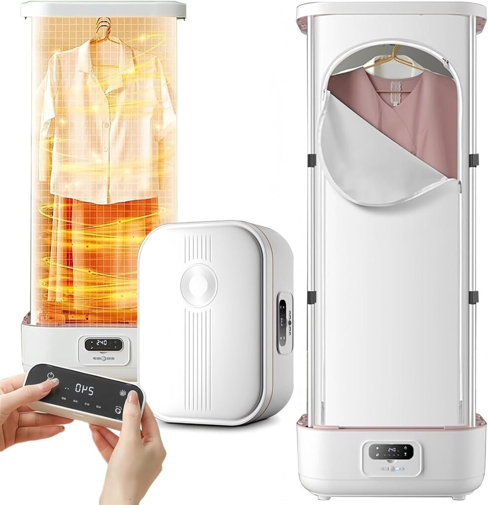 一般的な衣類ケア家電は「巨大で動かせない」か「簡易的すぎて頼りない」の二極化が進んでいますが、本製品は梱包サイズ約67cmという絶妙なコンパクトさを実現しています。これにより、一人暮らしのワンルームや、洗面所が狭い日本の住宅事情に完璧にフィットします。特に注目すべきは、「箱型構造による熱効率の最大化」です。袋を被せるタイプとは異なり、密閉された空間で熱を循環させるため、電力ロスを最小限に抑えつつ、短時間でムラなく乾燥・除菌を行うことが可能です 。