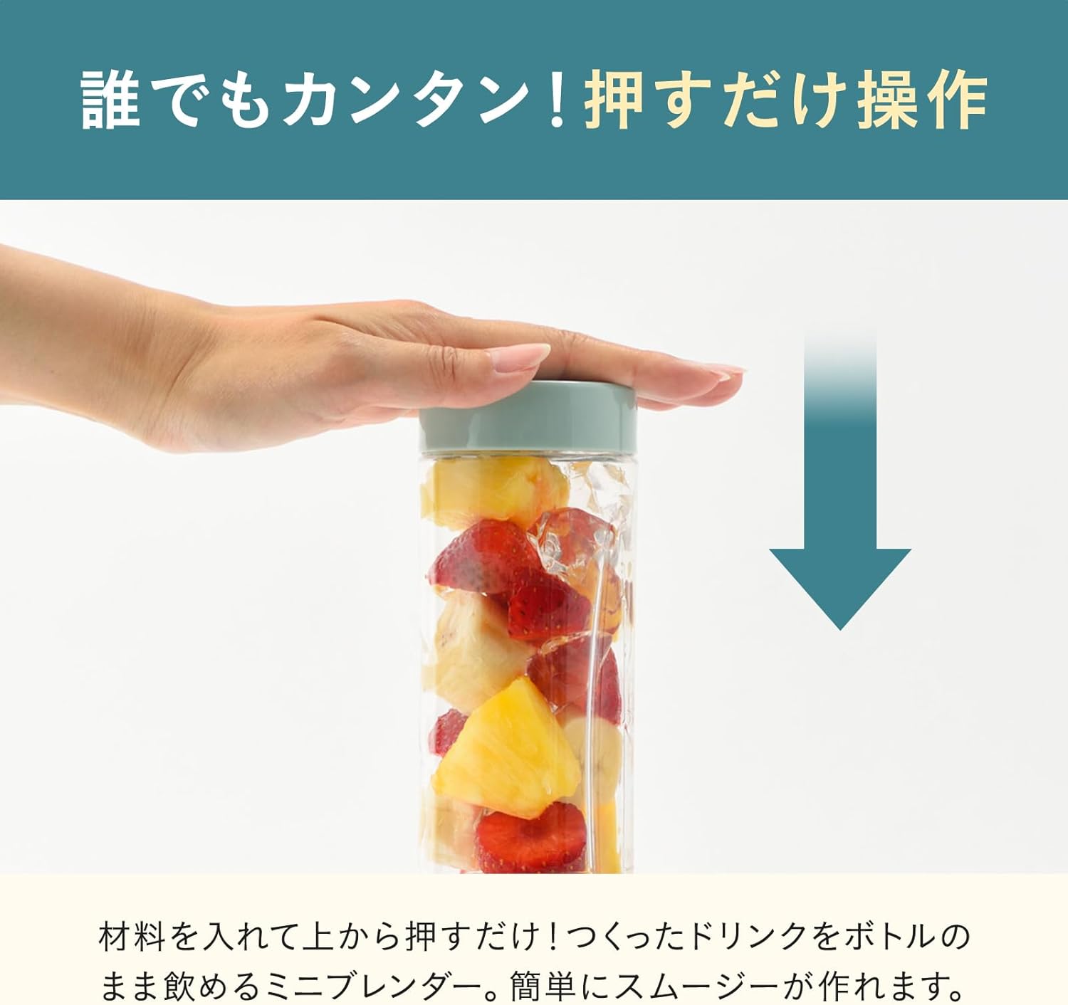 「操作がシンプルで分かりやすく、材料を入れて押すだけであっという間にフレッシュジュースが完成します。」
