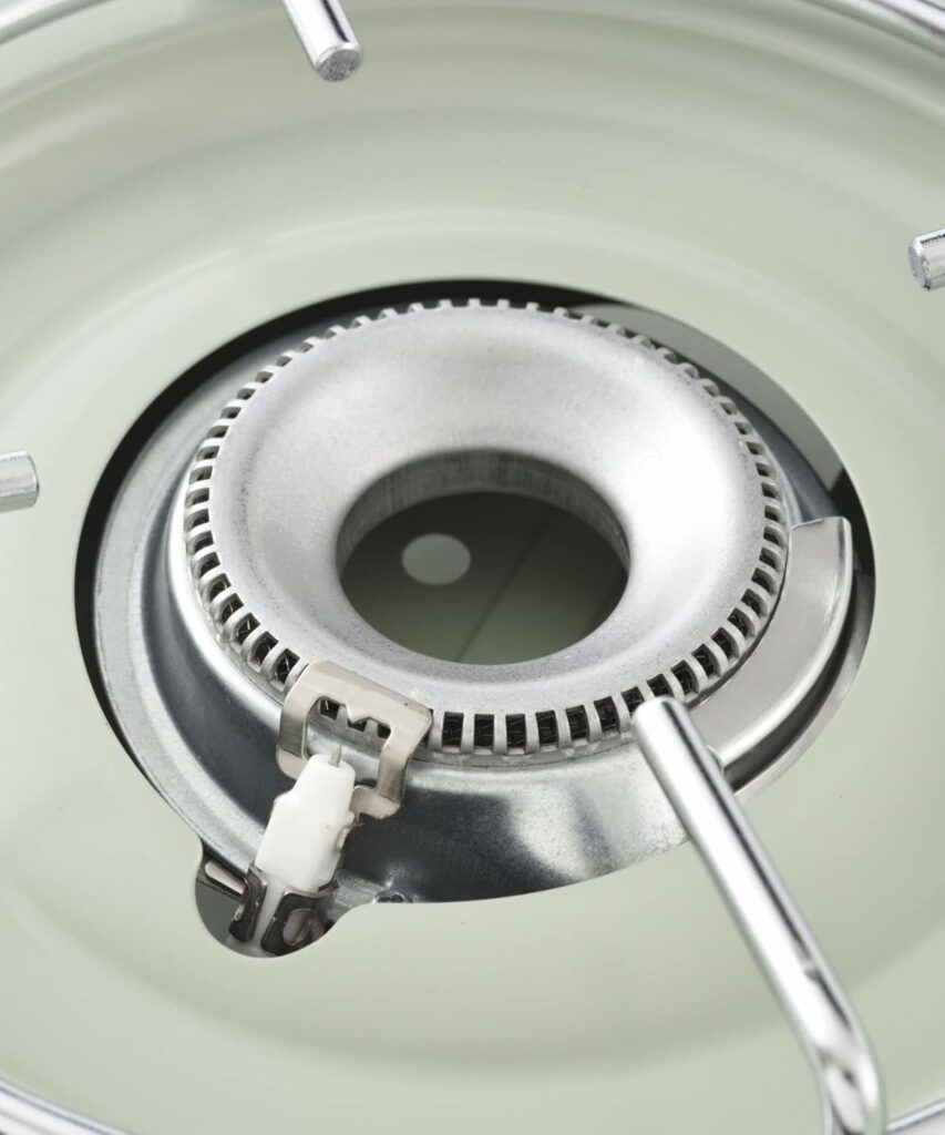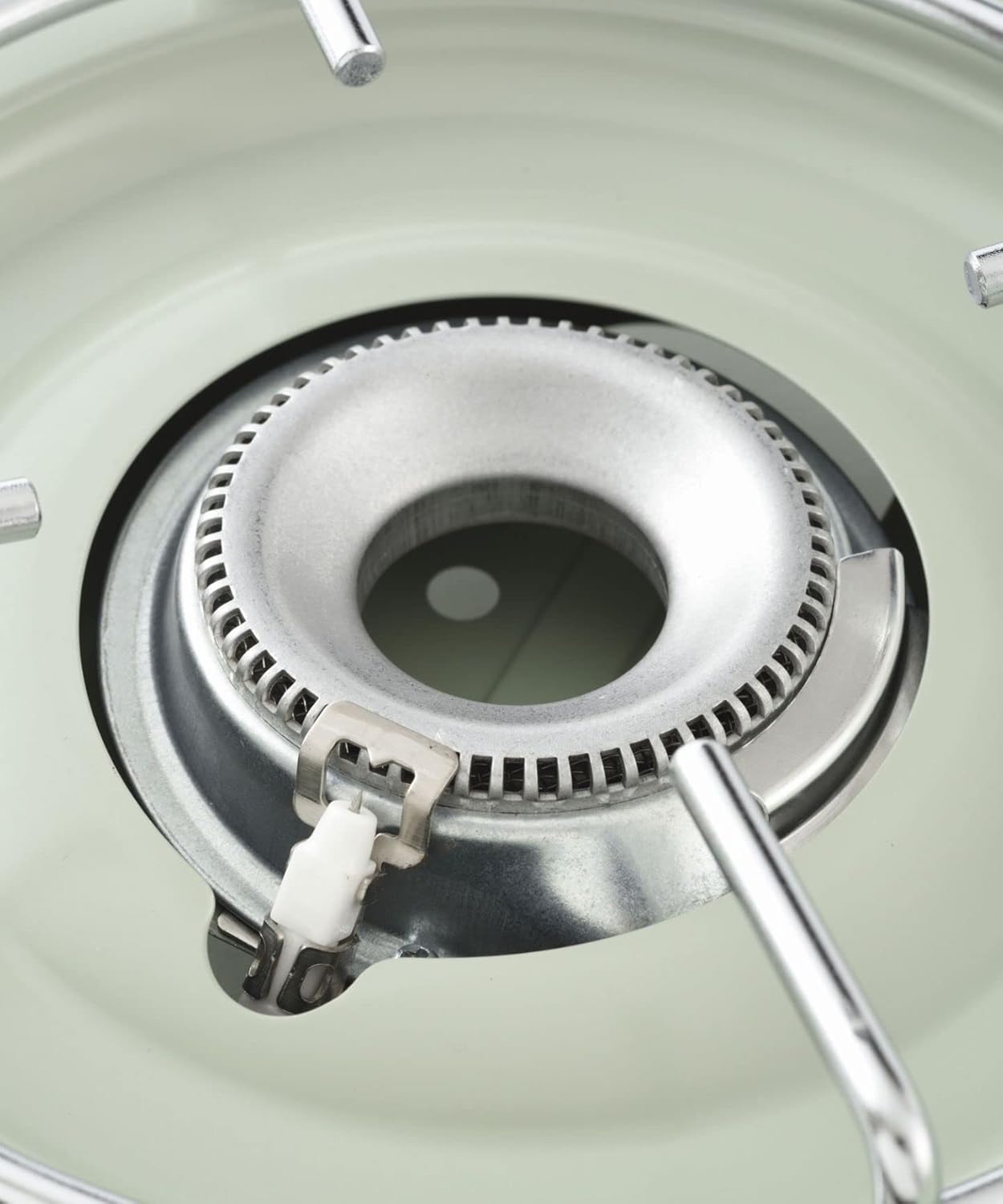 単に背を低くしただけではなく、座卓に置いた際に「鍋の中を覗き込む動作」を自然にサポートする設計になっています。これにより、家族や友人と顔を合わせながらの食事でも、視界を遮ることなく会話が弾みます。また、マグネット式のボンベ装着は、万が一の過熱時にボンベが自動的に外れる安全装置と連動しており、デザインに甘んじない高い安全基準をクリアしています。
