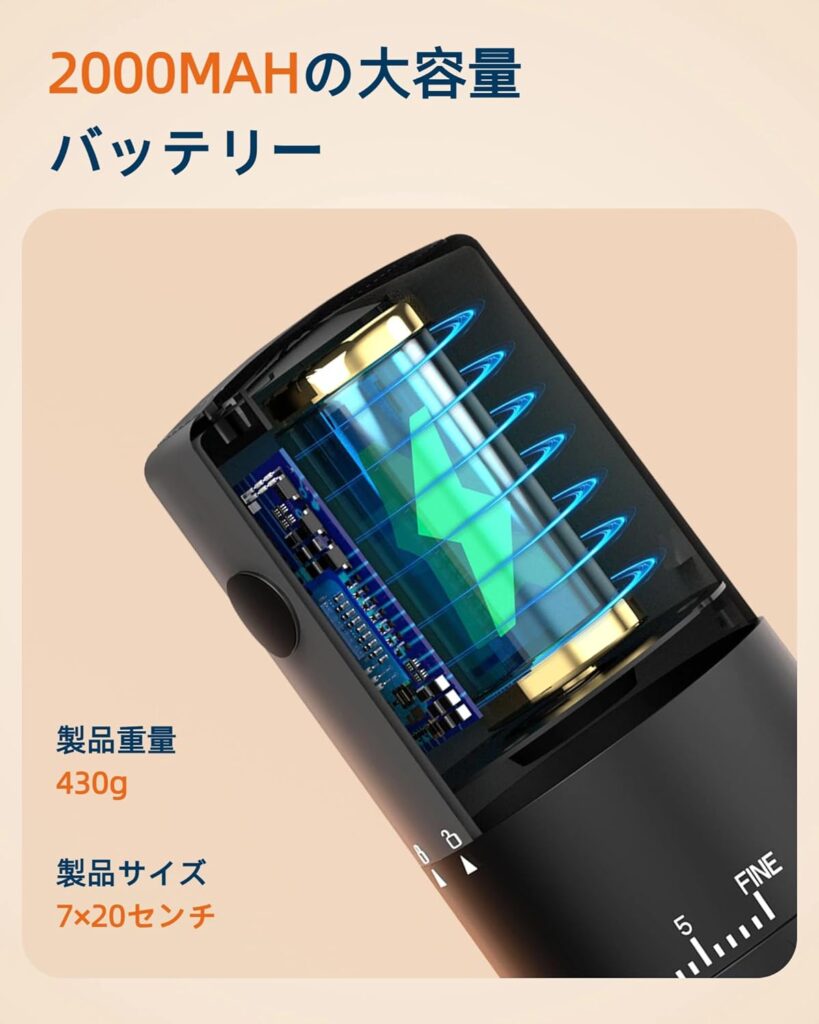 最大の魅力は、なんといっても40段階という驚異的な挽き目調整機能です。数万円クラスのグラインダーに匹敵するこの機能が、手頃な価格で手に入ります。「今日はスッキリさせたいから少し粗めに」「コクを出したいから細かめに」といった、豆の種類やその日の気分に合わせた味の追求を、誰でも気軽に始めることができます。これは、単なる作業としての豆挽きを、創造的な体験へと昇華させてくれる素晴らしい特色です。​