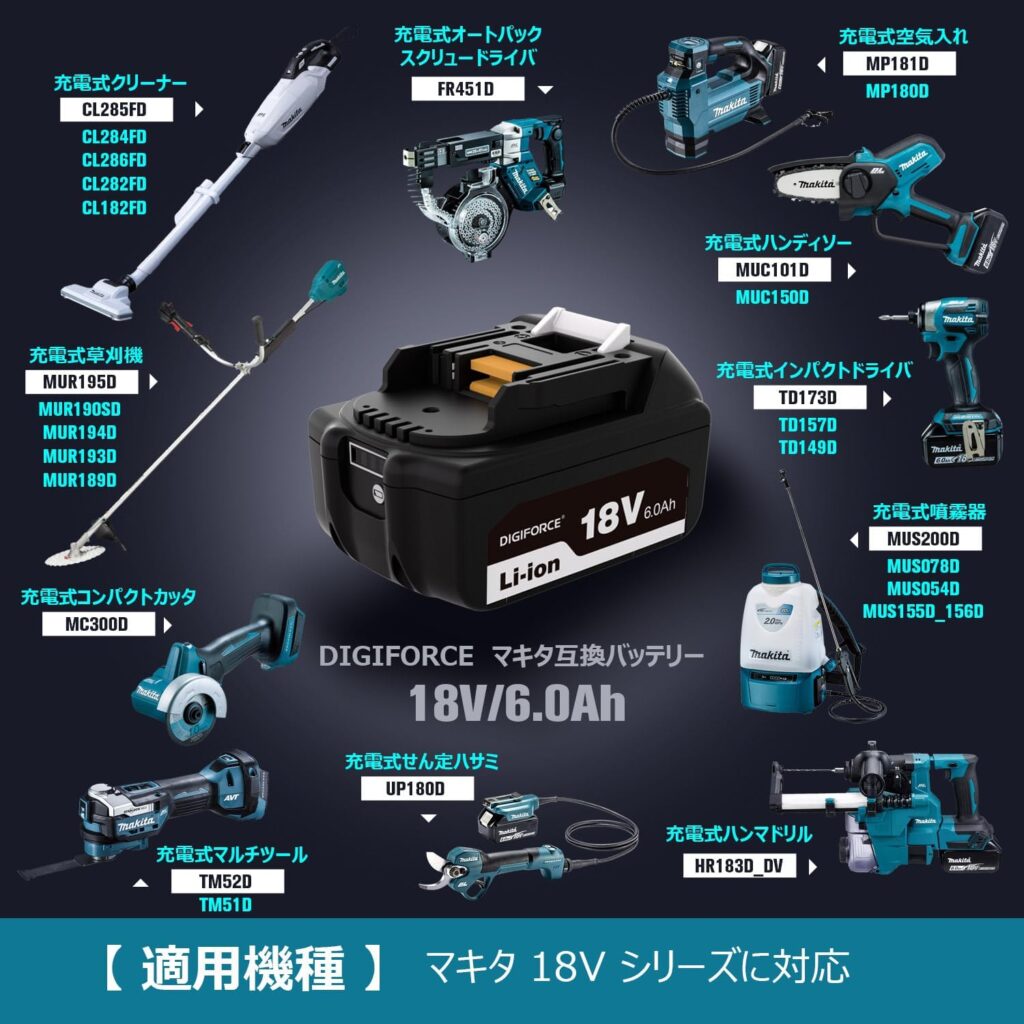 一方で、DIGIFORCEは価格面で圧倒的な優位性を持っています。純正バッテリー1個の価格で、DIGIFORCEなら2個セットを買ってもお釣りが来る場合が多々あります。「週末のDIYでしか使わない」「草刈り機用にとにかく数が欲しい」といったライトな用途や消耗の激しい用途においては、純正品のオーバースペックな耐久性よりも、DIGIFORCEの経済合理性が勝るケースが多いでしょう。