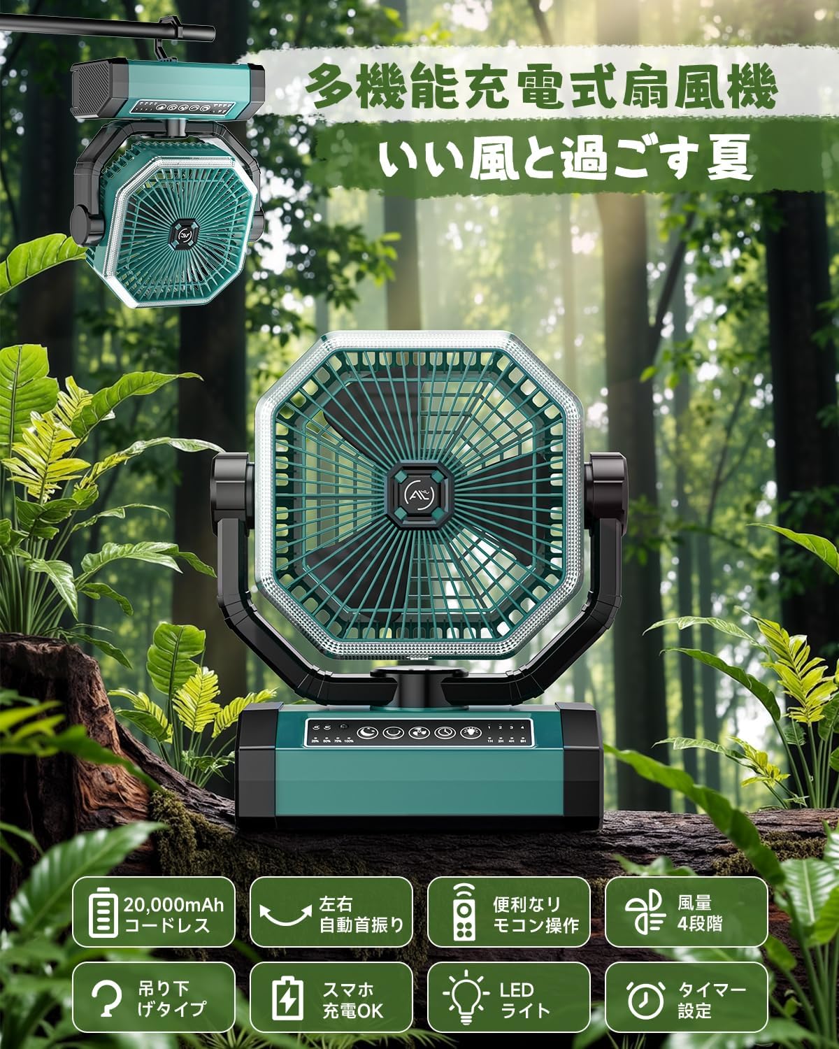 20000mAh大容量バッテリー・リモコン・LED照明・自動首振りと、これだけの機能を同価格帯で実現している点は非常に高く評価できます。