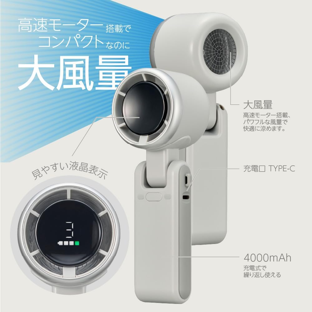 JFSA-02B GYは「デジタル液晶×3WAY折りたたみ×5段階風量×200g×TYPE-C」という機能の組み合わせで、コストパフォーマンスの高い夏の携帯扇風機として独自のポジションを確立しています。