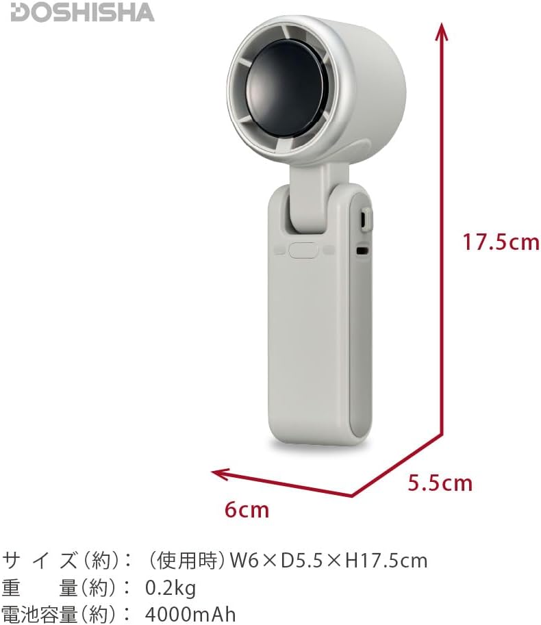 200gという軽量と5段階風量というきめ細かさを両立させた設計は、携帯扇風機市場でのDOSHISHAの商品企画センスが最もよく現れた製品のひとつです。