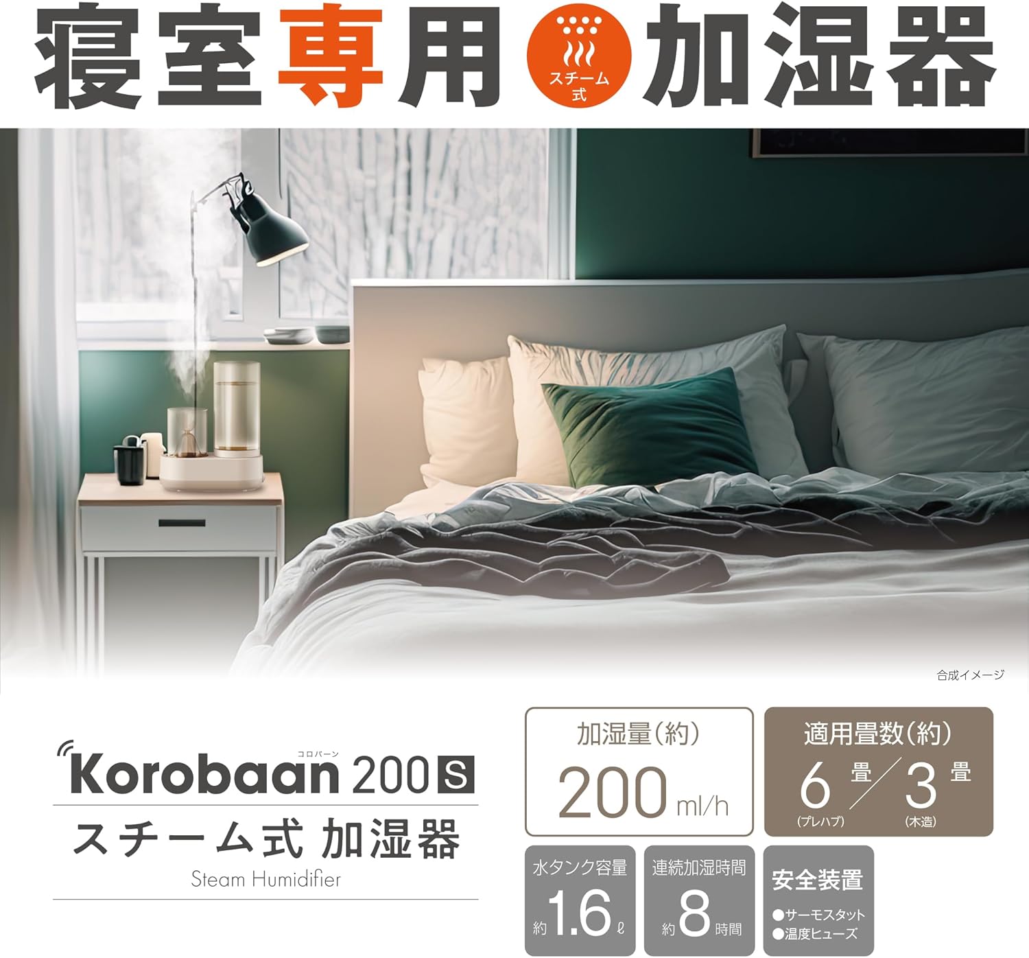 「小さな子供やペットのいる寝室で安全に使いたい・清潔な蒸気・静音・床濡れなしという四つを同時に求める」という方にとって、Korobaan 200Sは現在の寝室用加湿器市場における最も合理的な選択肢のひとつです。