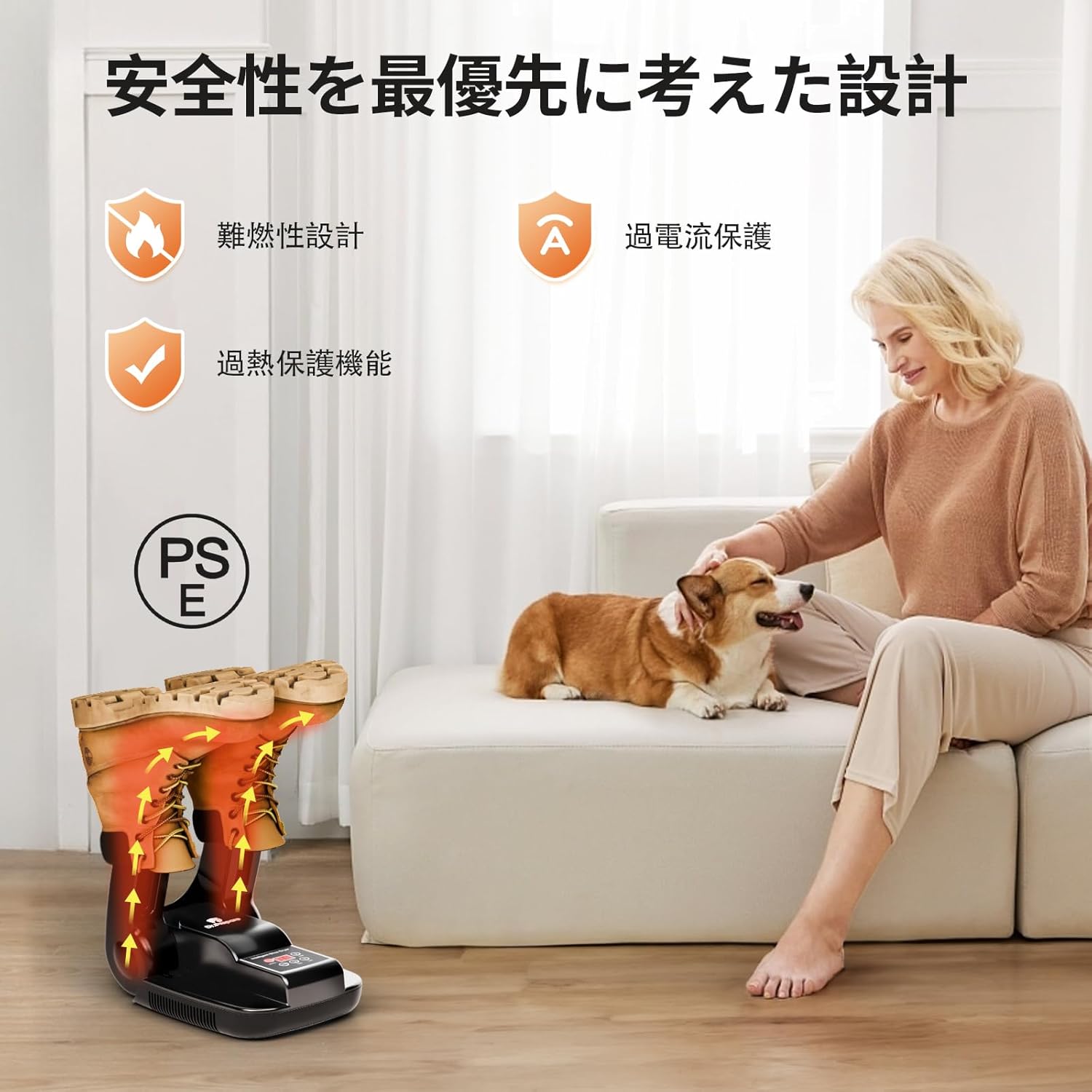 「160Wのしっかりとしたパワーがあるおかげで、帰宅後すぐに靴の湿気を飛ばすことができます。」