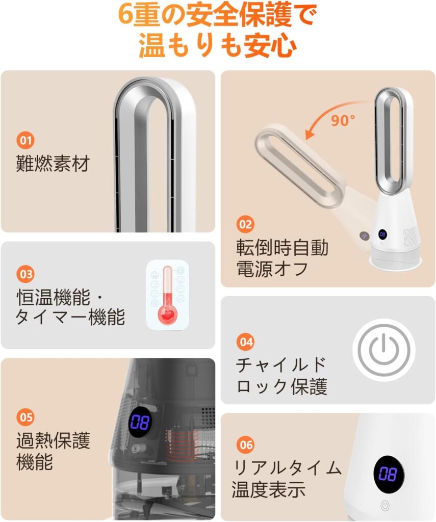 シャープのセラミックファンヒーターと比較すると、その差は「空気への配慮」に現れます。シャープ製品の多くは「プラズマクラスター」を搭載しており、暖房と同時に空気浄化や消臭効果を提供します。XH2105Yは「温めること」に特化しており、空気清浄機能は持っていません。リビングで長時間使用し、空気の質にもこだわりたいファミリー層にはシャープが適していますが、トイレや脱衣所での「短時間の暖」を求める場合、シャープの高機能はオーバースペックとなり、シンプルなEarwenの方がコストパフォーマンス良く役割を果たします。