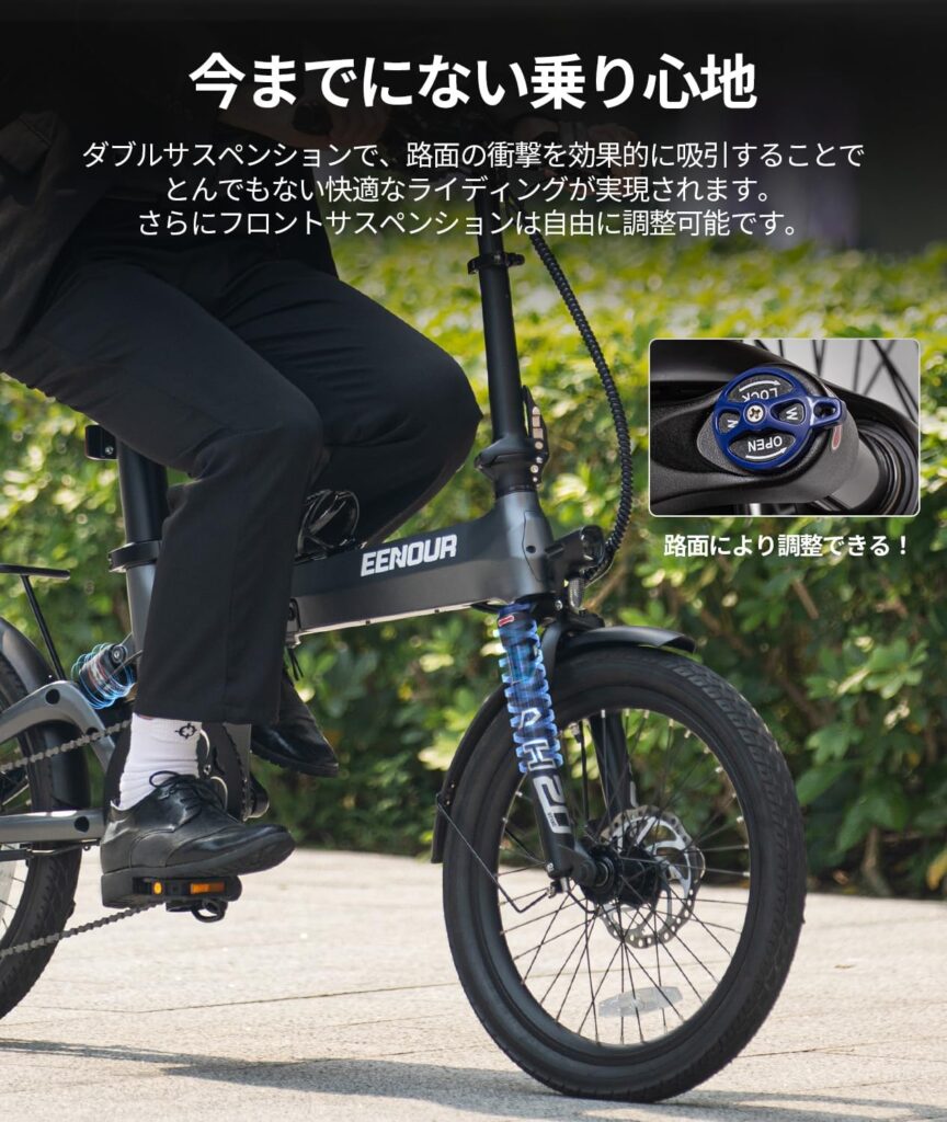 EENOURの電動自転車は、単なる移動手段ではなく、日常の風景を鮮やかに変えるポテンシャルを秘めています。「ダブルサスペンション」による極上の乗り心地と、「マットブラック」の洗練されたデザインは、所有する喜びを十分に満たしてくれるはずです。