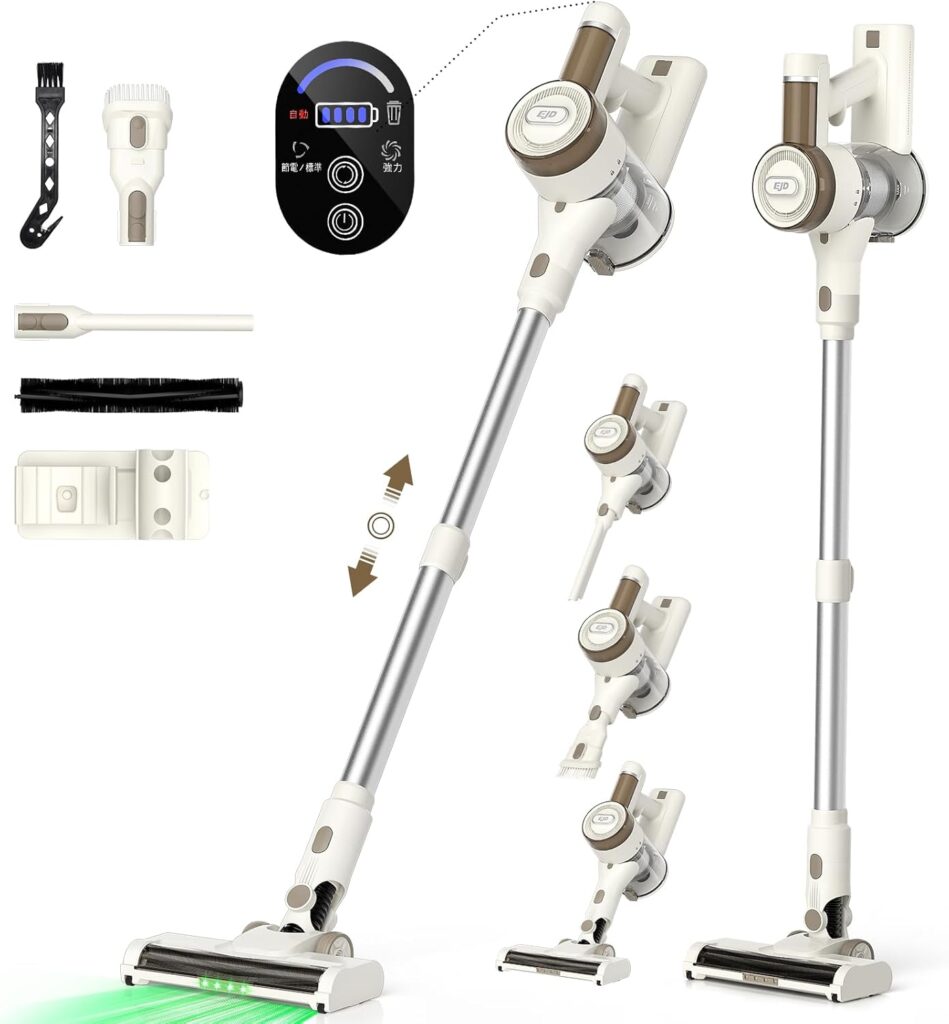 掃除機の代名詞とも言えるダイソンとEJDを比較すると、その設計思想の差が浮き彫りになります。ダイソンの最新モデルは、強力なデジタルモーターとレーザーによるゴミの可視化など、最先端技術の結晶です。しかし、価格はEJD H8が数台買えるほど高価です。
