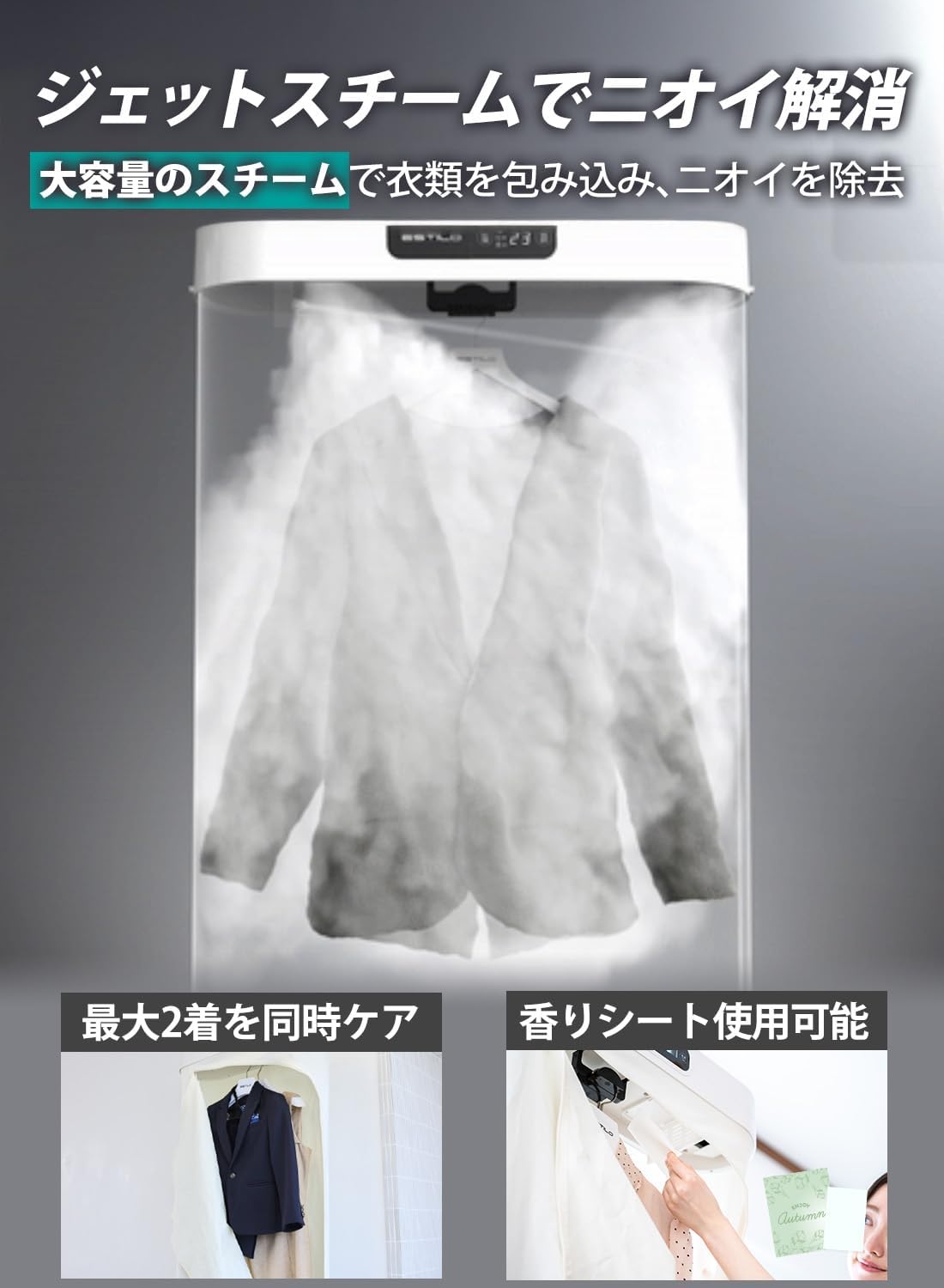 「時間の創造」です。ハンドスチーマーは、片手で衣類を引っ張り、もう片手でスチーマーを動かすという「労働」が必要です。1着仕上げるのに5〜10分拘束されます。ESTILOはセットしてボタンを押せば、その時間は完全にフリーになります。朝の支度中や入浴中にケアが完了するため、忙しい現代人にとってこの「放置できる価値」は計り知れません。​