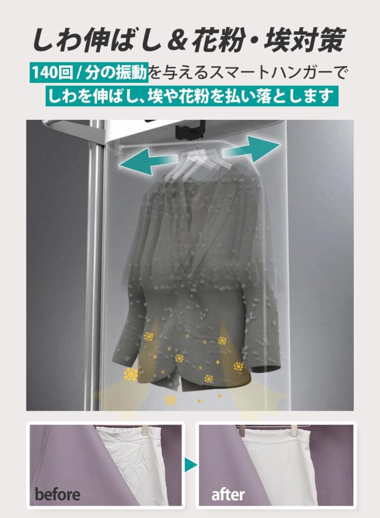 「花粉の時期、外干ししたくない服をケアできるのが嬉しいです。帰宅してすぐ除菌モードを使えば、部屋に花粉を持ち込まずに済みます」