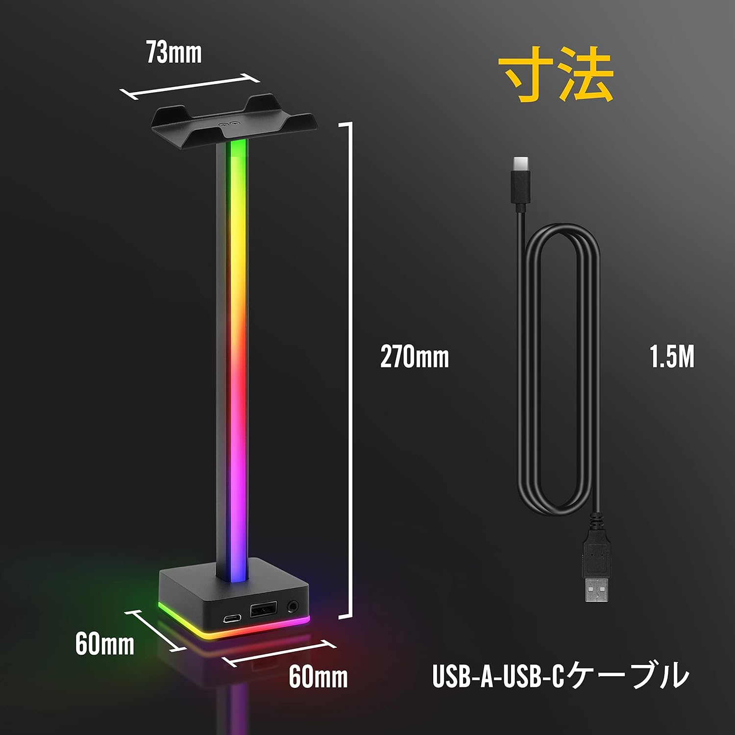ただヘッドホンを掛けるだけのスタンドではなく、50種類のライティングモードや3.5mm AUXポート、USBハブ機能まで搭載した、いわば「机の上の小さな司令塔」と呼べる存在です。