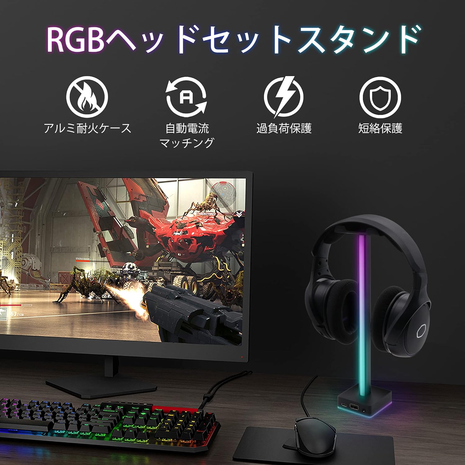 商品紹介「ヘッドホンスタンド JP-ARGB Headset Stand」