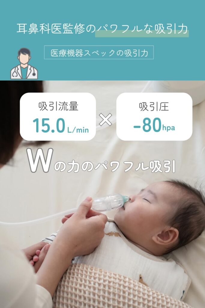 「吸引力の調整が細かくできるので、赤ちゃんの鼻の状態に合わせて加減できるのが安心です」